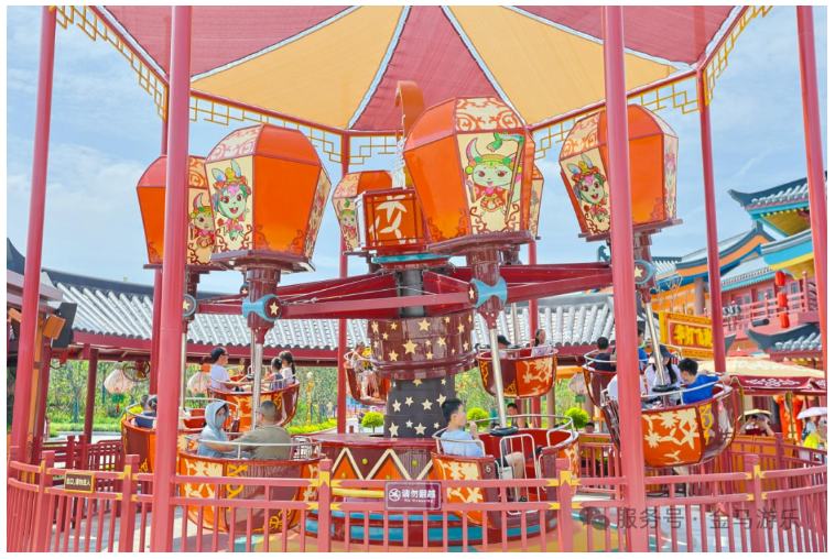 在資陽方特國(guó)色春秋中,摩天輪、自控飛機(jī)、跳傘塔、太空梭、海盜船等十余款游樂設(shè)備,均由金馬游樂進(jìn)行主題化外觀定制。憑借規(guī)模領(lǐng)先的專業(yè)技術(shù)團(tuán)隊(duì)與成熟的定制服務(wù)體系,金馬從數(shù)字化設(shè)計(jì)、建模,到國(guó)際水平的工藝制作,全程把控,最終實(shí)現(xiàn)藝術(shù)級(jí)主題呈現(xiàn),強(qiáng)化設(shè)備與園區(qū)主題環(huán)境的深度融合,營(yíng)造出高品質(zhì)的沉浸式游樂氛圍。