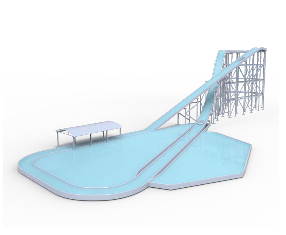 激流勇進設(shè)備提升高度30米,是目前世界上最高的激流勇進設(shè)備,刺激程度倍增。軌道呈"8"字形,減少占地面積;且可同時運行2條游船,運營更高效。