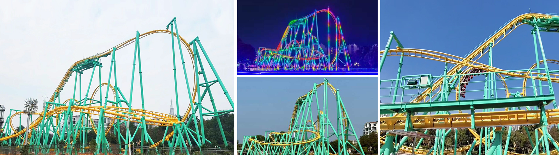 六環(huán)過??應(yīng)?創(chuàng)新技術(shù)與座式列?結(jié)構(gòu),爬升、翻滾、旋轉(zhuǎn)、下沖,刺激環(huán)環(huán)相扣,同時乘坐舒適,安全感??,體驗(yàn)?凡。該過??占地?積較?,運(yùn)營效率?,尤為適合中?型游樂場。
