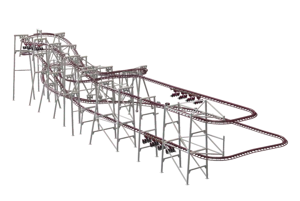 速降過山車由鏈條提升到軌道最高點(diǎn)后脫鏈,在經(jīng)歷自由滑行—速降—自由滑行—減速后,平穩(wěn)回到站臺(tái)。軌道設(shè)有俯沖、傾斜、速降等游玩元素,玩法經(jīng)典,能給游客帶來刺激愉悅的乘坐體驗(yàn)。
